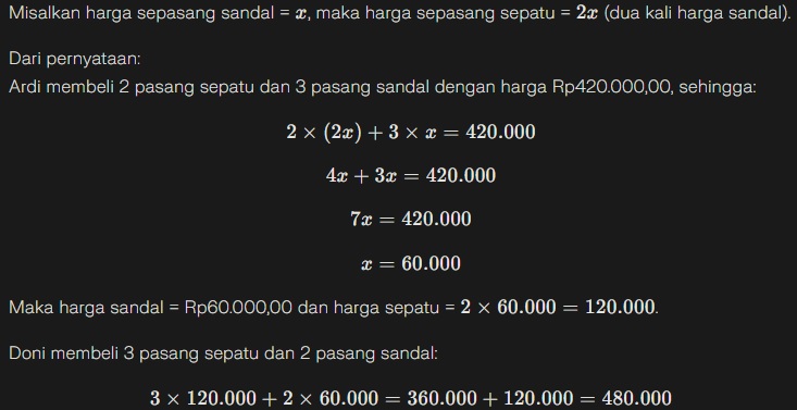 Jadi jumlah permen ketiga orang tersebut = 10p=10×8=8010p=10×8=80