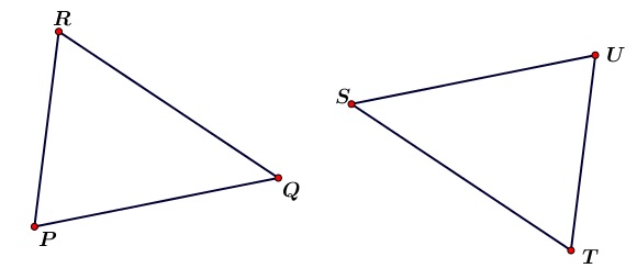- Pada gambar berikut, segitiga PQR dan segitiga STU merupakan sua segitiga kongruen.