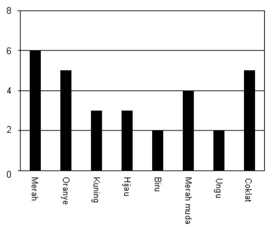 - Roni diperbolehkan ibunya untuk mengambil satu permen dari sebuah kantong. Dia tidak dapat melihat warna permen tersebut. Banyaknya permen dengan masing-masing warna dalam kantong tersebut ditunjukkan dalam grafik berikut...