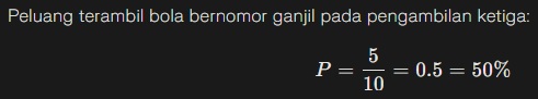 3. Pada pengambilan ketiga, peluang terambil bola bernomor ganjil dihitung.