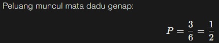 Mata dadu genap adalah 2, 4, dan 6 sebanyak 3 sisi.