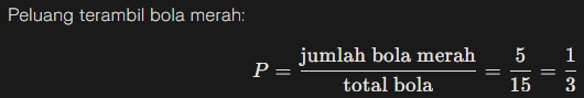Jadi, peluang Roni mengambil permen warna merah adalah 50%.