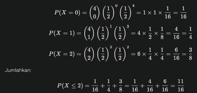Frekuensi harapan = peluang × banyak percobaan = 1/2 × 120 = 60 kali.