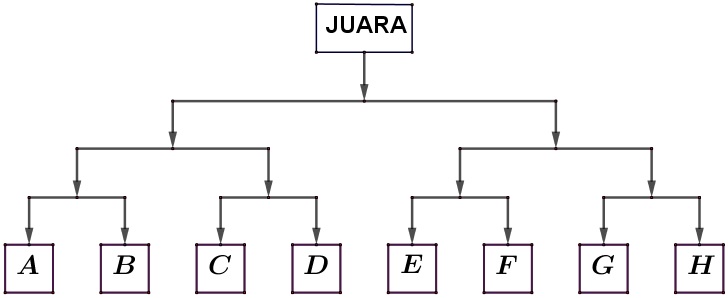 Setiap tim memiliki peluang 12 untuk melaju ke babak selanjutnya. Peluang B bertemu F di babak final dan F menjadi juara adalah...