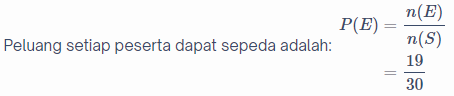 Banyak kupon Andi untuk mendapatkan satu buah sepeda adalah 15 kupon, sehingga yang diharapak terpilih kupon diantara 15 yang dimiliki Andi, n(A)=15.