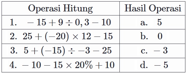 - Tabel berikut menunjukkan operasi hitung bilangan bulat beserta jawabannya