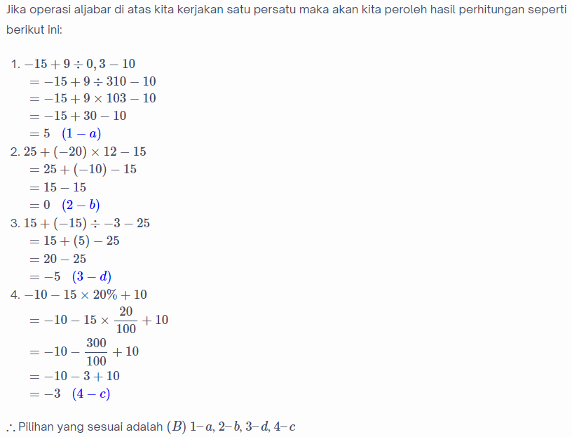 Berdasarkan urutan tingkatan operasi pada bilangan, pembahasan dapat seperti berikut ini: