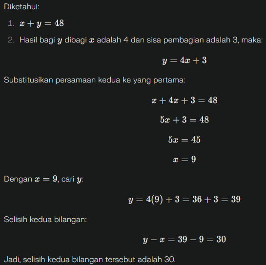 Pasangan yang tepat antara operasi hitung dengan hasilnya adalah....